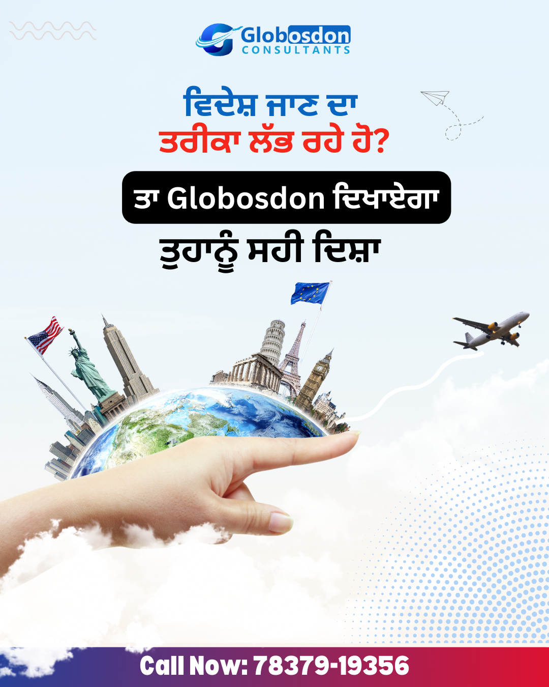 Hi my company name is Globosdon Consultants Pvt Ltd . We provide visa services for Australia, Canada, UK and in areas like Permanent Residency, Spouse Permit, Study Permit, Tourist Permit. Our Office is located at SCF - 65, Top Floor, above Muthoot Finance, Phase 2, Sector 54, Sahibzada Ajit Singh Nagar, Punjab 160055, Sahibzada Ajit Singh Nagar, Punjab, India. Our success rate is 99%. You can contact us at 7837919356 or info.globosdonconsultants@gmail.com.
