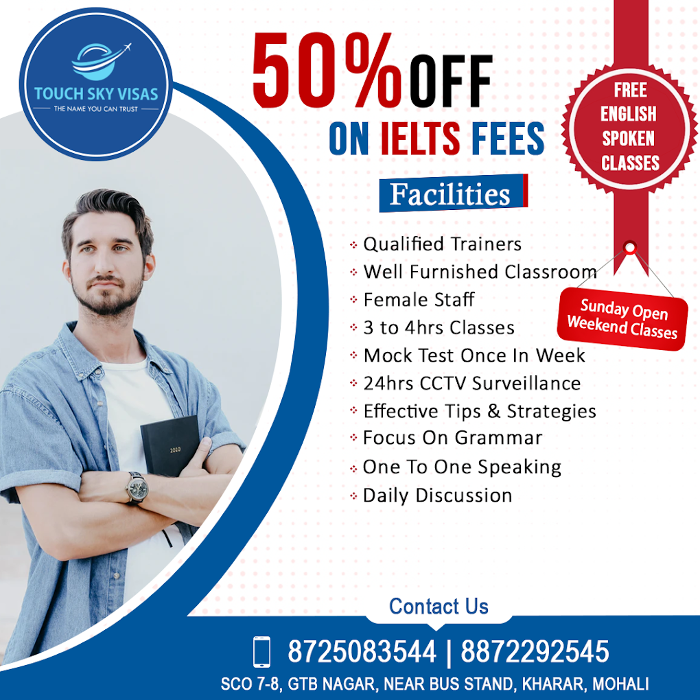 Hi my company name is Touch Sky Visas . We provide visa services for Australia, Austria, Belgium, Canada, China, Croatia, Cyprus, Czech Republic, Denmark, Dubai, Estonia, Finland, France, Georgia, Germany, Greece, Hungary, Iceland, India, Ireland, Italy , Latvia, Liechtenstein, Lithuania, Luxembourg, Malta, Mauritius, Netherlands, Newzealand, Norway, Poland, Portugal, Singapore, Slovakia, Slovenia, Spain, Sweden, Switzerland, UK, Ukraine, USA and in areas like Permanent Residency, Spouse Permit, Work Permit. Our Office is located at SCO 7-8, Guru Teg Bahadur Nagar, Kharar, Punjab 140301, Kharar, Punjab, India. Our success rate is 95%. You can contact us at 8725083544 or touchskyvisas@gmail.com.